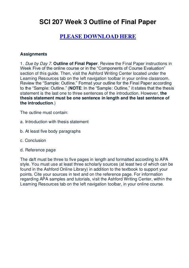 This section should include the following:. You should provide citations that focus on the central research question and its related debates. You should format the references according to the standard for your subfield. Final Research Paper Outline A final research paper is the last research paper college students are required to write to demonstrate their academic knowledge of a given subject before they graduate.
